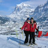 Friday morning we were up bright and early to rent our gear, and then boarded the bus and 2 trains necessary to take us to Kleine Scheidegg, the base of the area where we skiied the first half of our day. The commute was long, but well worth it - we climbed about 6,000 feet in those 2 hours and the entire ride was through the beautiful and breathtaking snow-covered Alps. We took many trains to get up the mountain throughout the weekend but our rides were by far the most memorable train rides of my life - it was amazing how the tracks wound up and down the mountain, and we really got to see the Jungfrau region at every level. Sure beats the V train!